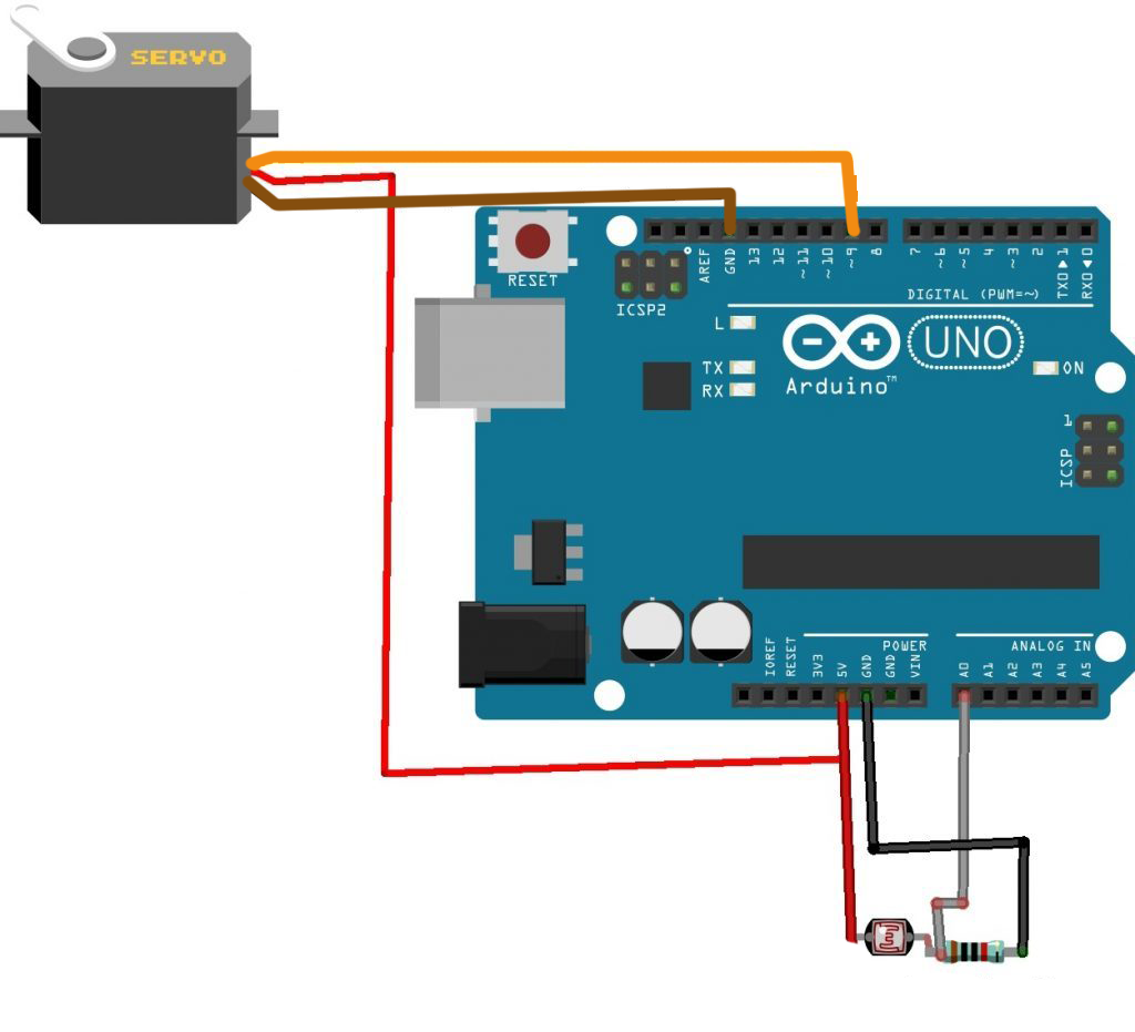 پایه های فتوسل تفاوتی ندارند ولی سیم های سروو با هم تفاوت دارند که به صورت زیر به آردوینو وصل می شوند: