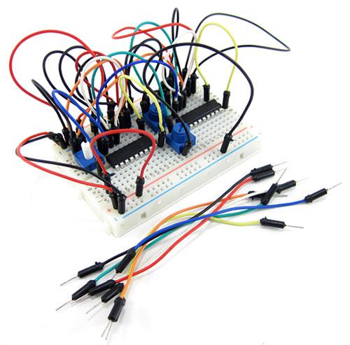 سوراخهای روی بردبورد را با سیم به هم وصل میکنند. به این سیمها، سیم جامپر میگویند.