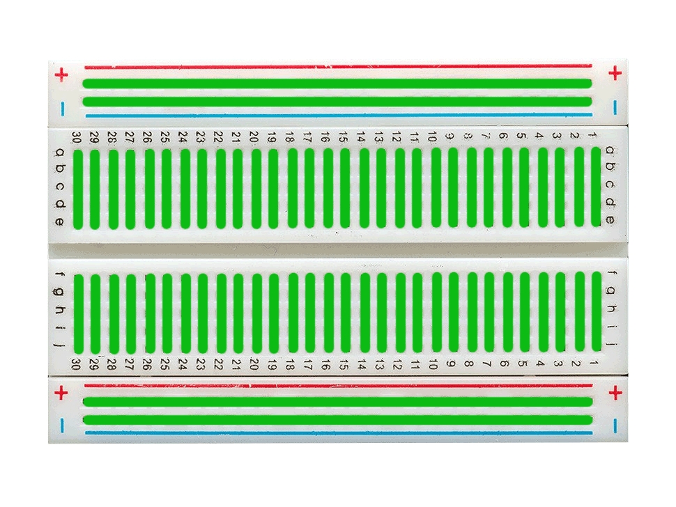 (در شکل بالا، نقطه های سبز روی بردبورد یعنی: سوراخهای این مسیر، از زیر بردبورد به هم وصل هستند)